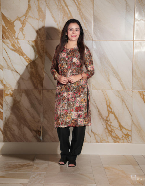 Block Stone Pattern Brown Colour Kurta