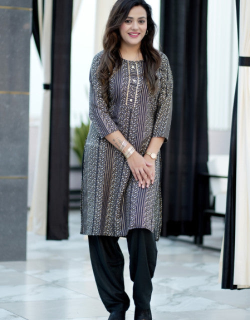 Type: Twinkle Lines Pattern Black Colour Kurta Success