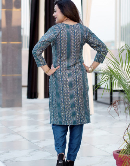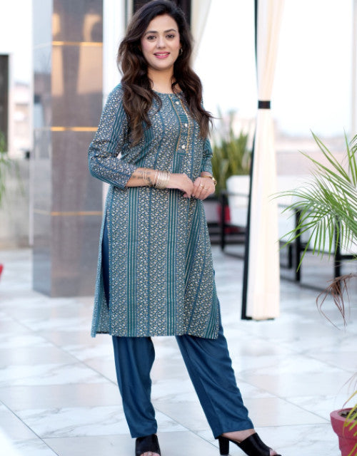 Type: Twinkle Lines Pattern Blue Colour Kurta