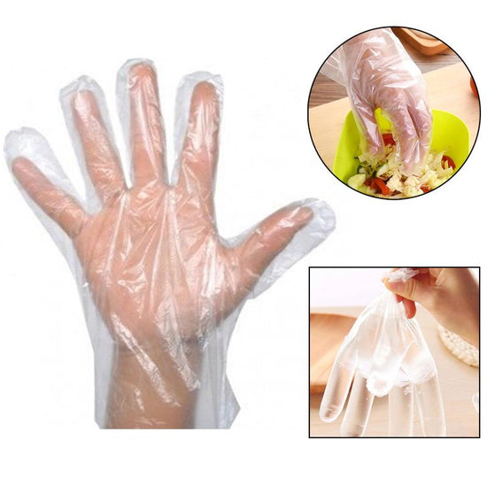 Plastic Transparent Disposable Clear Gloves (White) (100Pc)