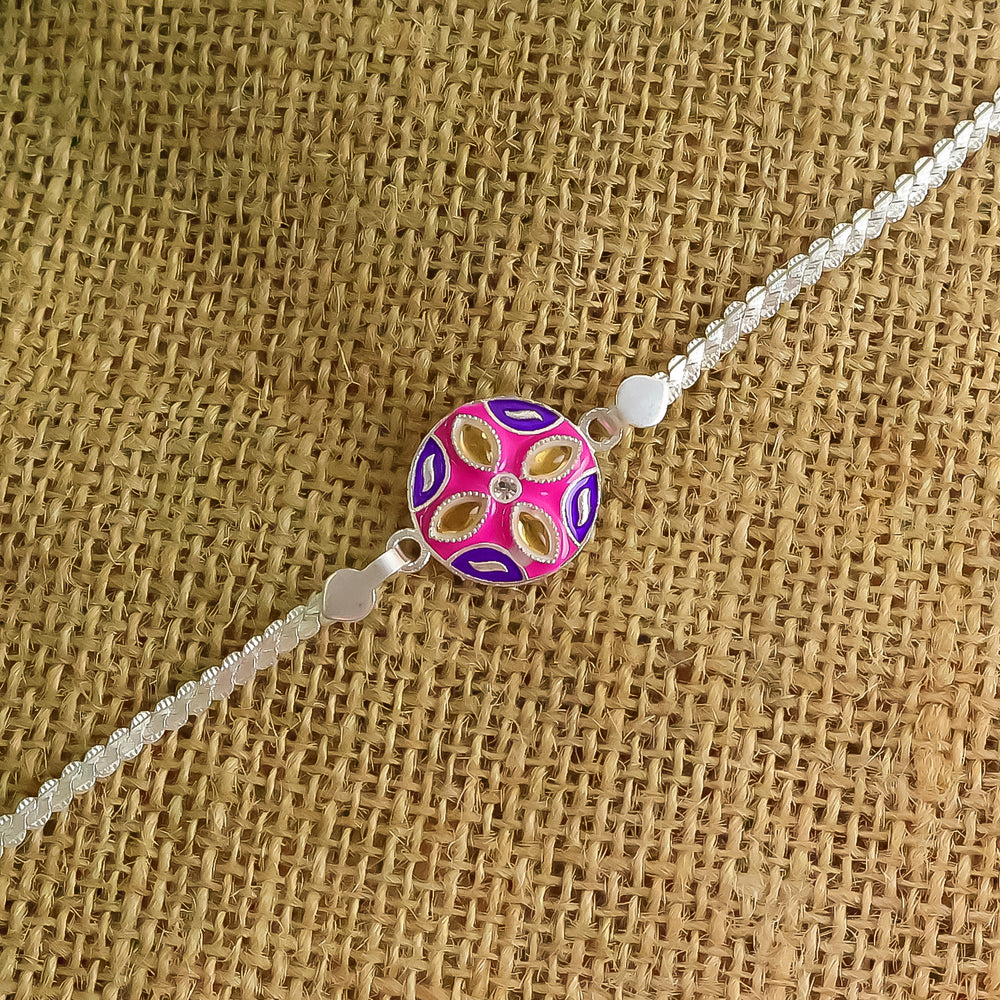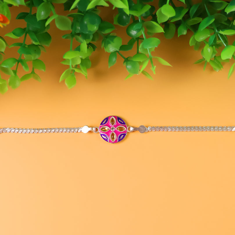 Type: 1 Pc Rakhi With Silver Finish Chain Designer Bracelet Rakhi