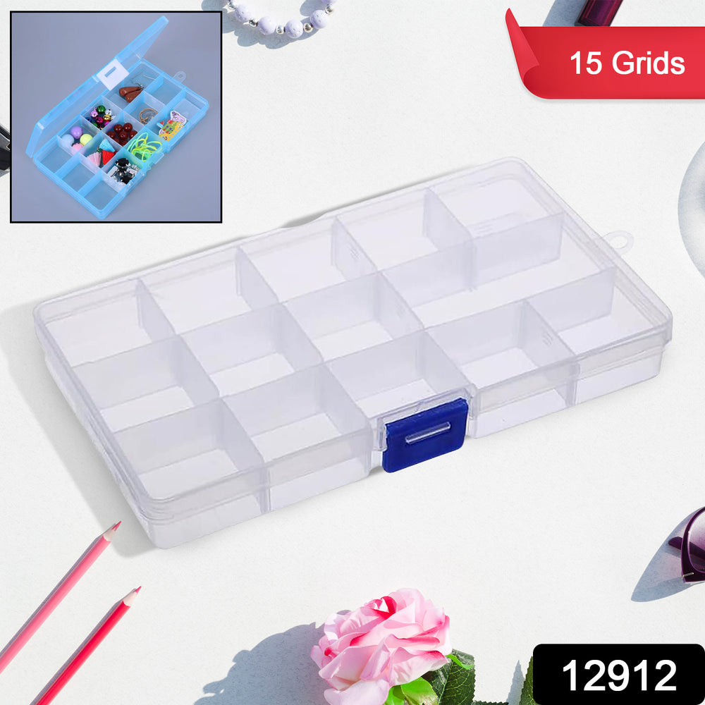 12912 15 Grids Jewelry Organizer Plastic Jewelry Organizer Box Clear Jewelry Organizer Box Plastic Bead Organizers with Adjustable Dividers for Herbs Pills Bead, Jewelry, and Other Small Item (1 Pc)