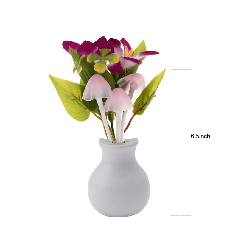 Home D?cor - LED Dream Night Light Night Auto ON/Off Sensor Mushroom Lamp Multi Color Illumination with Flowers LIGHT DETECTION SENSOR Royal Color Vase Shape Plug Design With 2 Artificial...