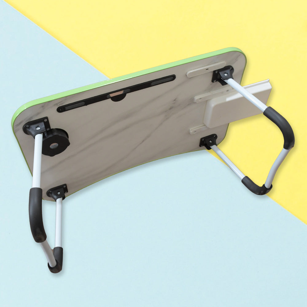 7892 Multipurpose Study Table Foldable Portable Notebook Bed Lap Desk Tray Stand Reading Holder With Coffee Cup Slot Drawer Fan Usb Cable Light For Breakfast Reading Movie Watching (1 Pc Mix Color)