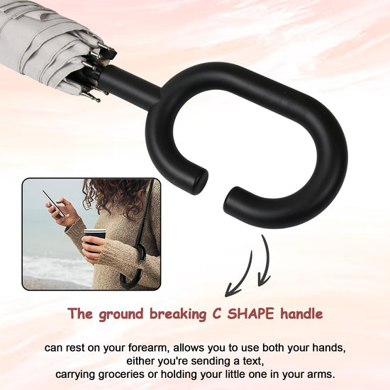 ERGONOMIC C-SHAPED HANDLE - Walk comfortably hands-free while answering your phone calls, handle grocery bags, baby, or even grab your kid?s hand. The comfort grip C-Shaped handle allows you to slide over your forearm or wrist so you can attend to what is more important.