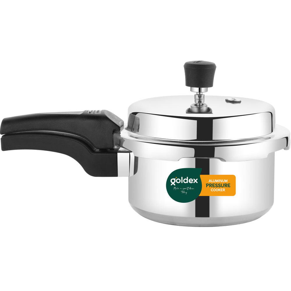 Aluminium Unique Goldex Pressure Cookers With Outer Lid Pressure Cooker, Heavy Bottom, Easy Open and Close, Healthy Cooking (Induction Base) (2 Litres)