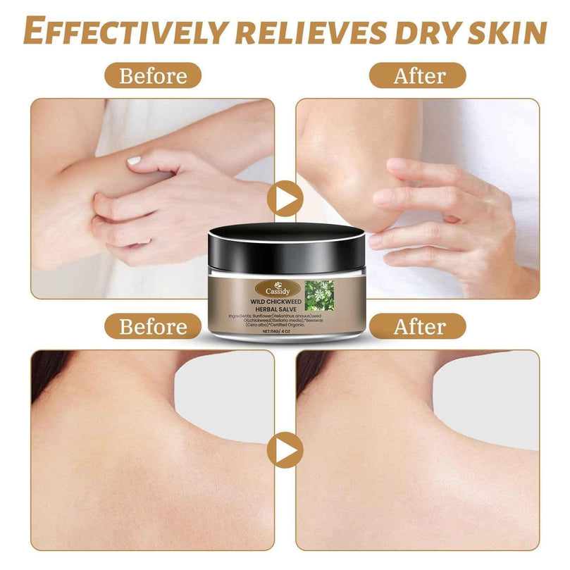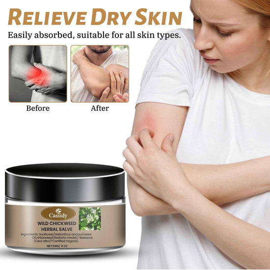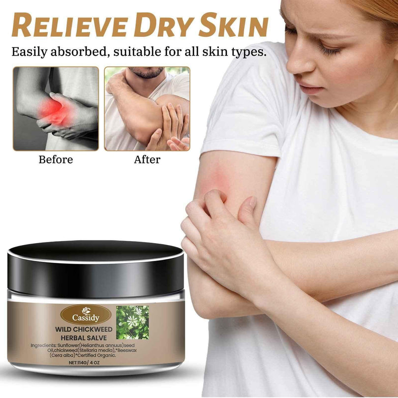 CASSIDY Wild Chickweed Herbal Salve is a nourishing, all-natural remedy designed to soothe and heal your skin. Infused with the healing properties of chickweed, known for its anti-inflammatory and moisturizing benefits, this salve provides gentle relief for dry, irritated, or sensitive skin. The rich, creamy texture glides on easily, forming a protective barrier that locks in moisture while promoting healing. Perfect for addressing minor cuts, scrapes, and rashes, this versatile salve is a must-have in any natural skincare routine, bringing the goodness of herbal care straight to your fingertips.
