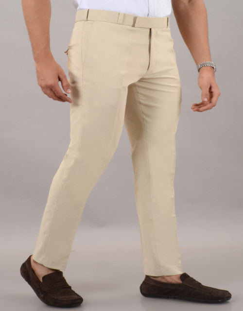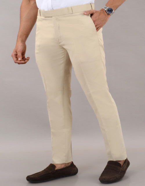 Cream Stretchable Formal Pant with Expandable Waist for Men (SIZE - 30,32,34,36)