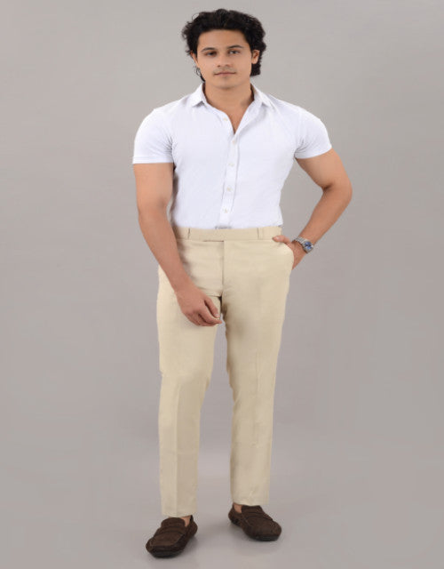 Type: Cream Stretchable Formal Pant with Expandable Waist for Men (SIZE - 30,32,34,36)