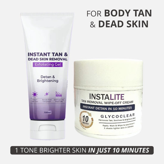 Product Name: Dead Skin 100 ml & Tan Remover Cream 200 gm Combo Package Contains: It has 1 Tan Removing Gel & 1 Tan removing Cream Composition: 0.5% Kojic Acid...