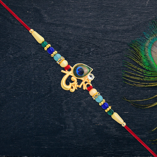 Divine Govind Rakhi With Peacock Feather Design And Multicolor Beads