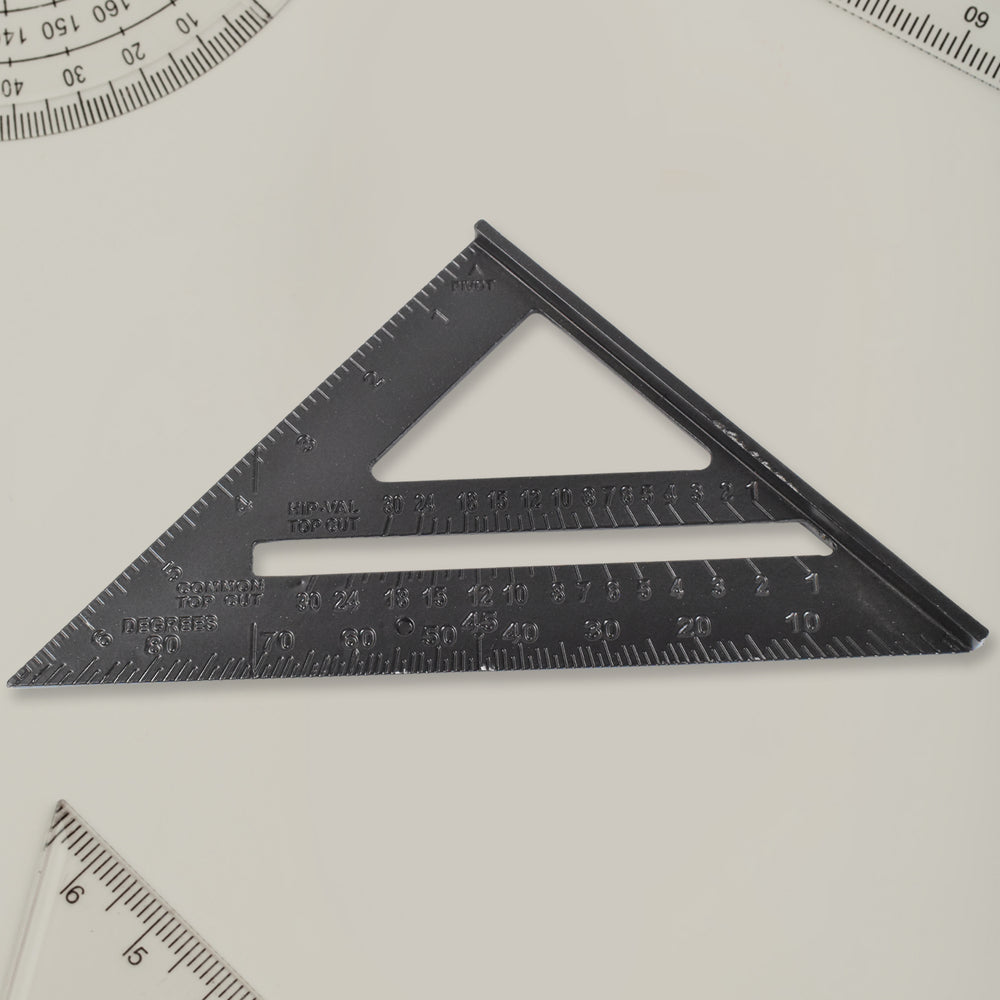 Double Side Scale Triangle / Ruler Measurement Hand Tool, 45 Degree Triangle Ruler, Home for Industry, Aluminum Alloy Rafter Square 7-Inch Length (1 Pc / Black)Description:- Multi Functional Tool Rafter...