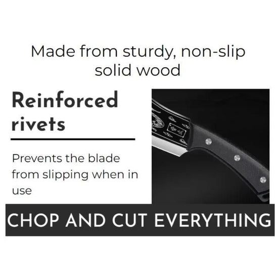 Product Name: Dragon Chopping Knife Stainless Steel Blade Package Contains: It has 1 Pack of Knife Material: Stainless Steel Color: Black Length: 33.2 Breadth: 6.5 cm Combo/Set Of: Pack of 1 Weight: 400