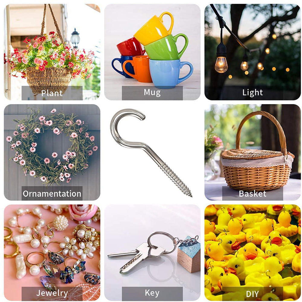 Eye Hooks Screw in Heavy Duty, Stainless Steel Eye Bolts Screw, Anti-Rust Self Tapping Eye Lag Screws Eyelet Screw for Wood, Securing Cables Wires (7 Pc Set)