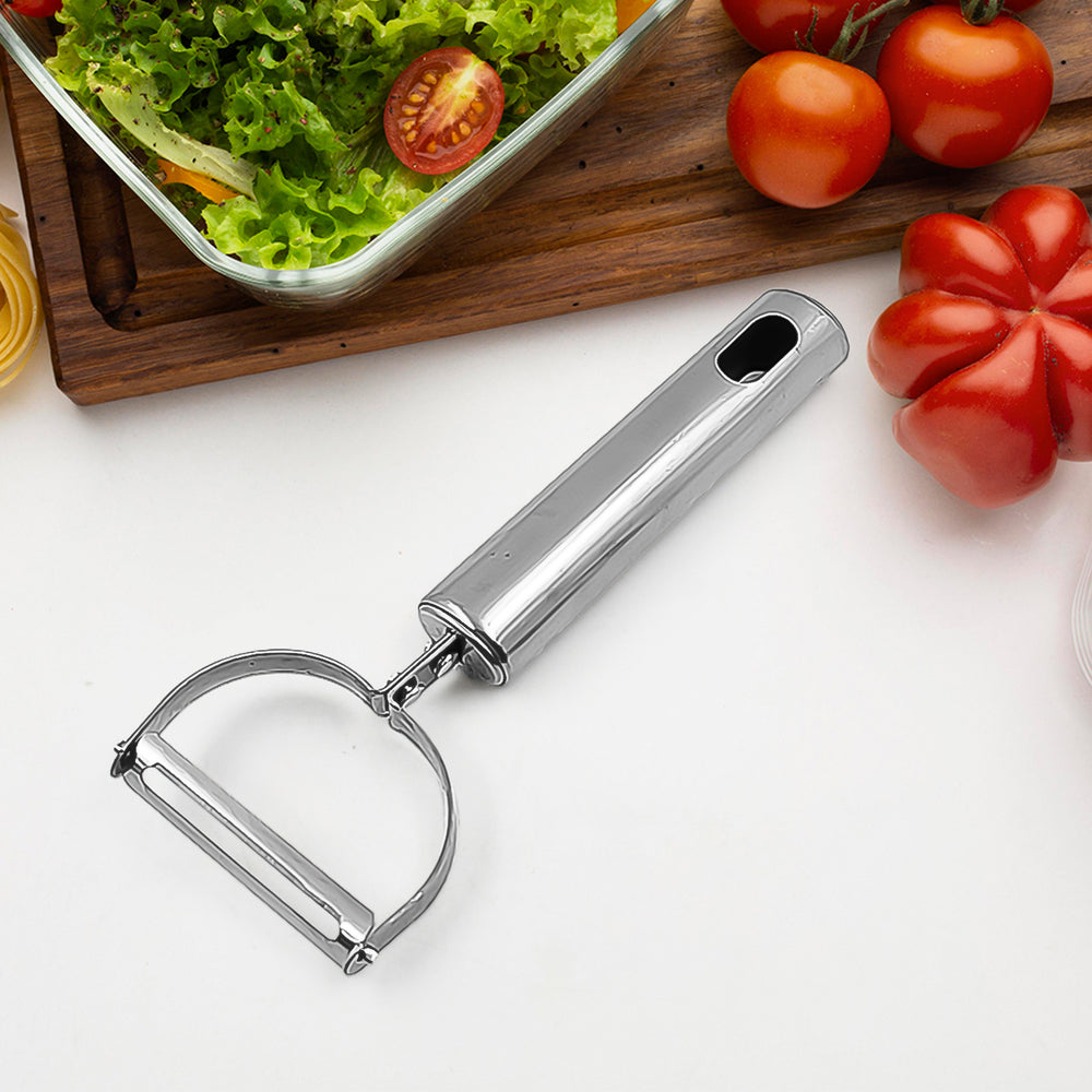PERFECT PEELING TOOL: It comes with 1 peeler :1. Blade peeler is great for slimming and peeling hard fruits and vegetables such as apples, carrots, and potatoes. 2. Peeler is good for soft skinned fruits and vegetables such as tomato, mango.
