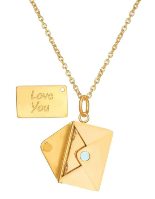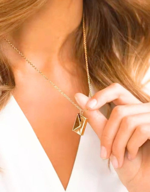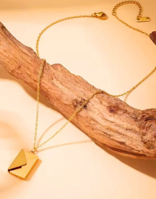 Gold-Plated Stainless Steel Square Pendant With Chain