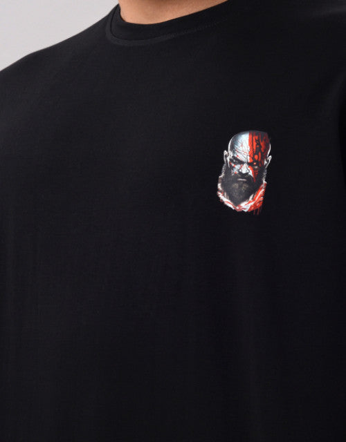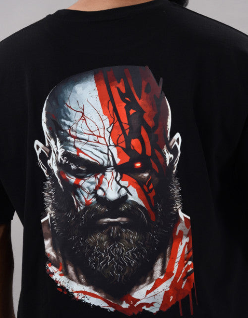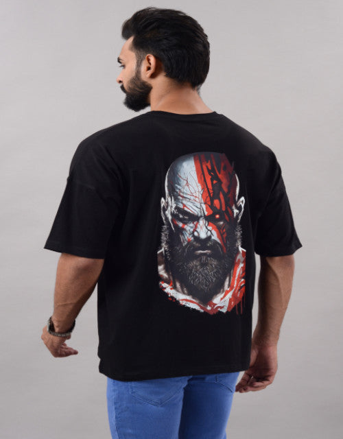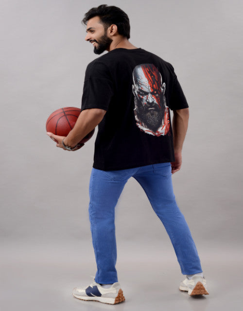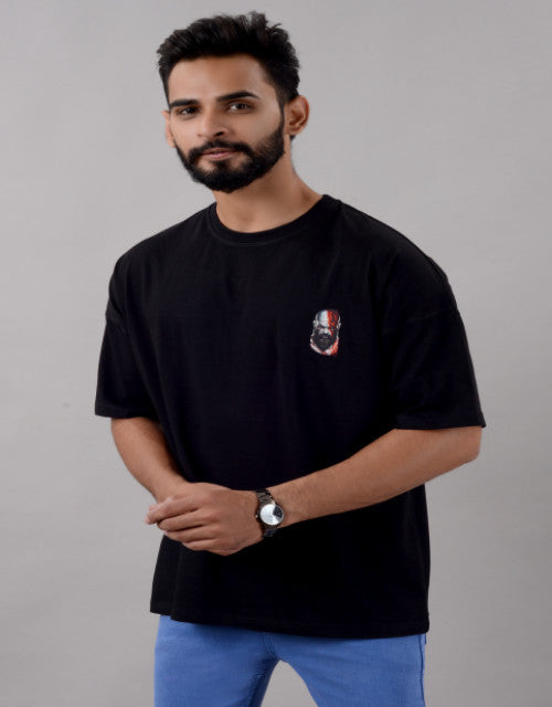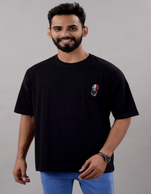 Kratos Men Half Sleeve Round Neck Black Graphic Print Oversized Fit T-Shirts (SIZE- M,L,XL,XXL)