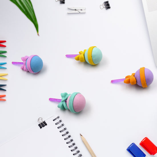 Lolipop/Eraser for Girls/Eraser for School B'Day Return Gift Party Doughnut Lollipop Ice Cream Theme Shape Erasers Pencils Set for Kids Educational Stationary kit, School Supplies (1 Set 4 Pc)