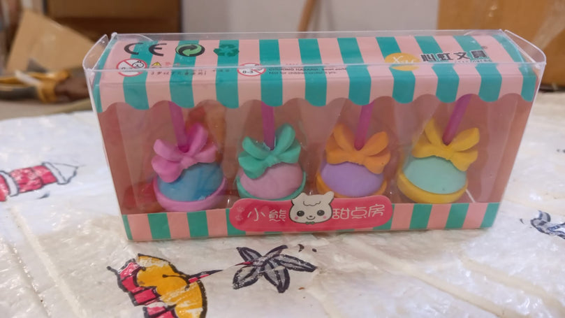 Lolipop/Eraser for Girls/Eraser for School B'Day Return Gift Party Doughnut Lollipop Ice Cream Theme Shape Erasers Pencils Set for Kids Educational Stationary kit, School Supplies (1 Set 4 Pc)Description:- ★MULTI...