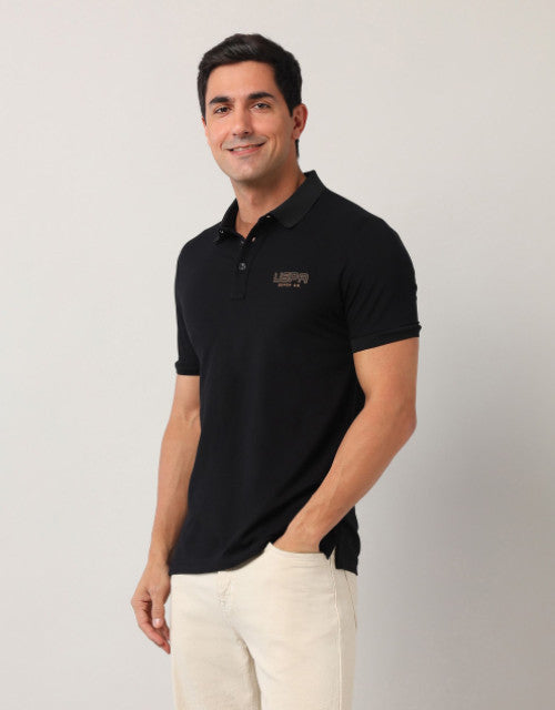 Men Solid Polo Collar Cotton T-shirt
