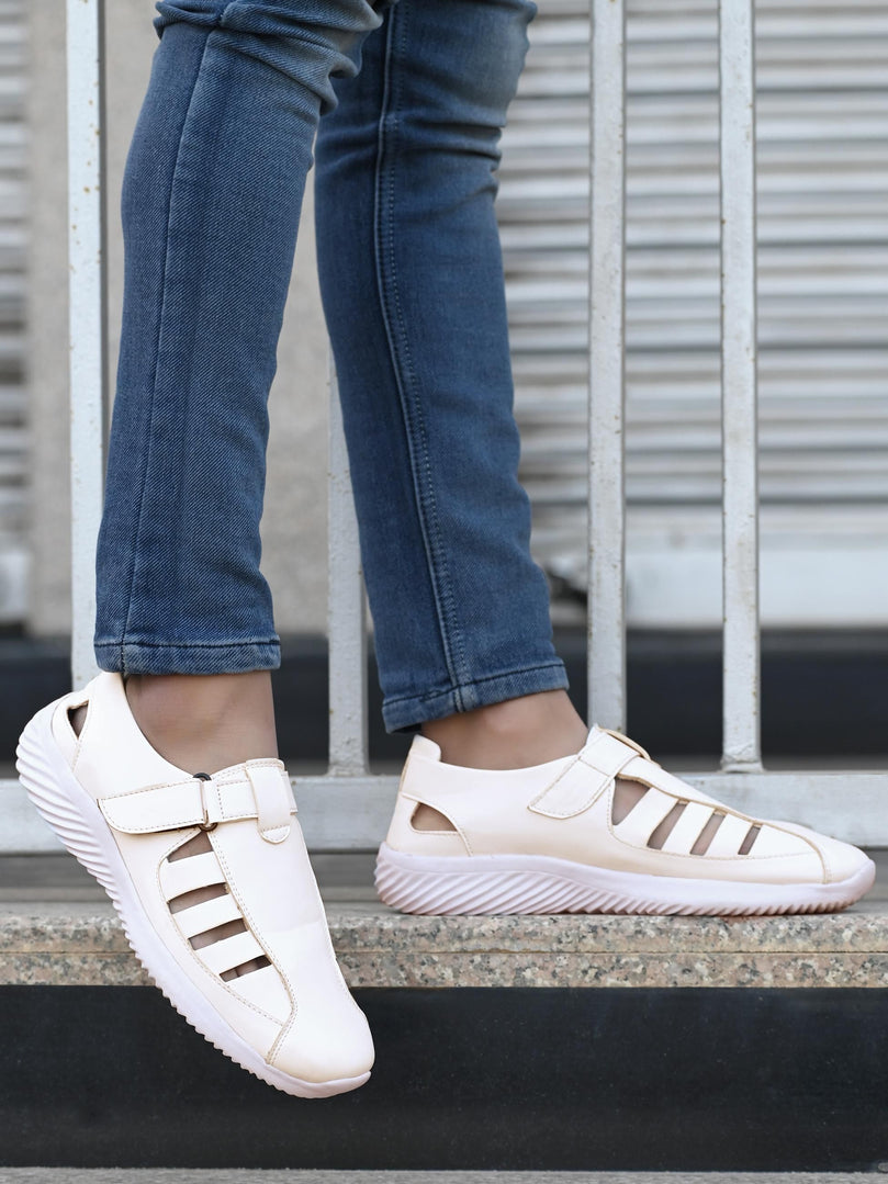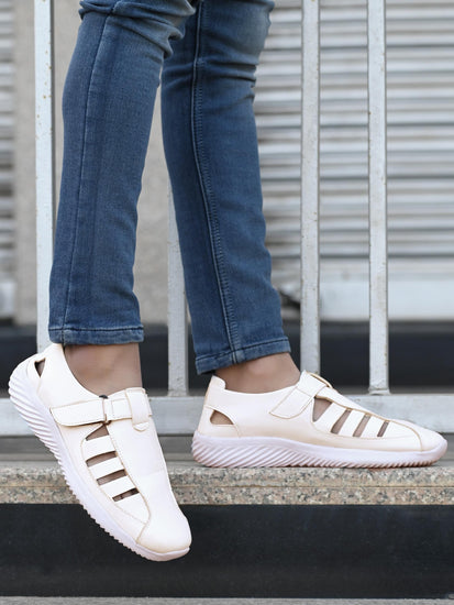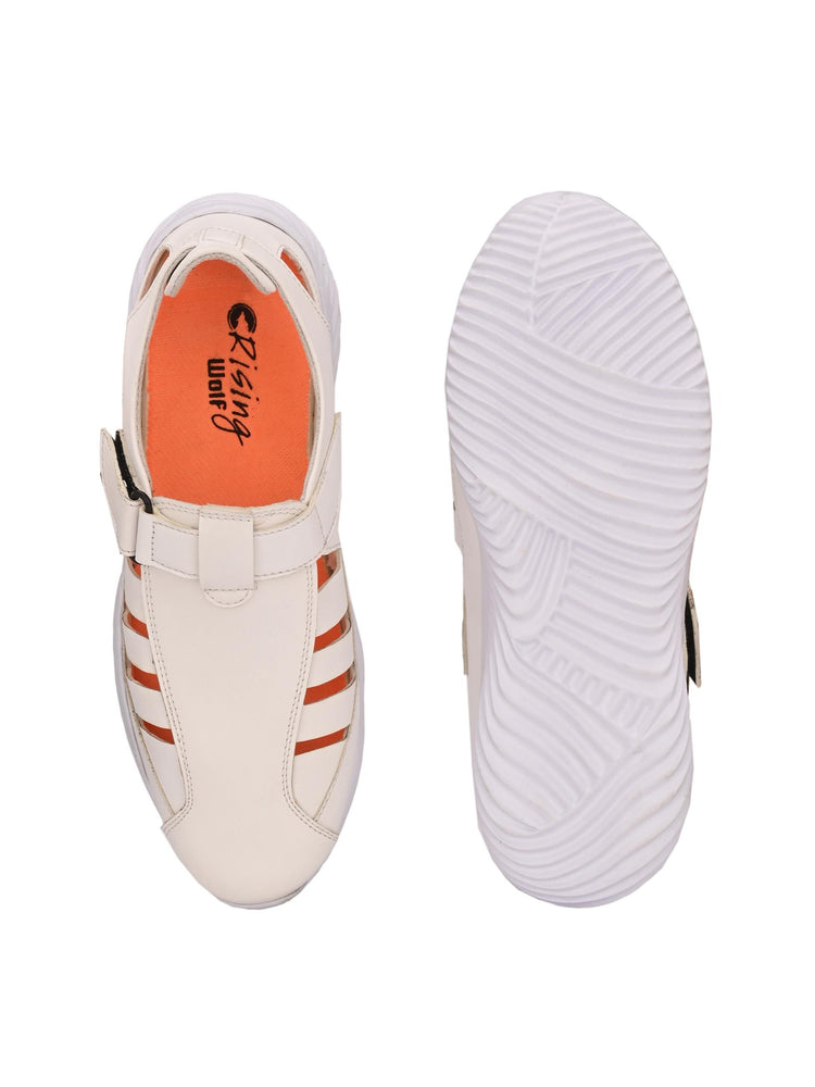 Men's Synthetic Velcro White Sandal