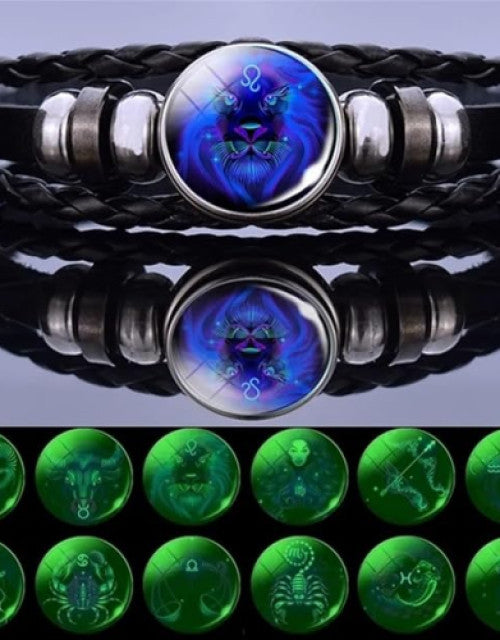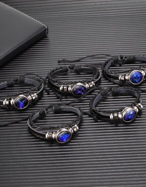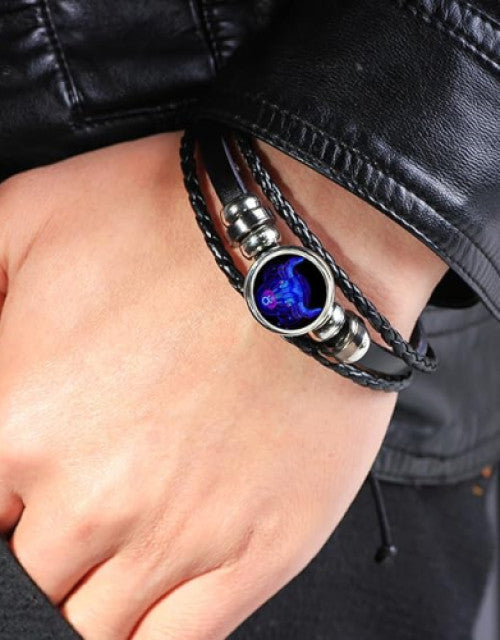 Multilayer Constellation Zodiac Leather Bracelet Vintage Black Leather Bracelet