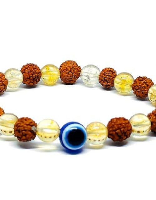 Natural Citrine Crystal Rudraksha And Evil Eye BraceletNatural Citrine Crystal Rudraksha And Evil Eye Bracelet
