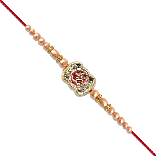 Type: Om Rakhi With Stone Embellishments Golden Beads
