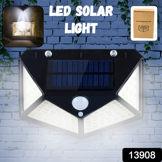 Outdoor Solar Lamp 100 LED Solar Light PIR Motion Sensor Wall Light Waterproof Solar Powered Sunlight (1 Pc)Description :- 100 LED solar waterproof four-sided human body induction wall light switch...