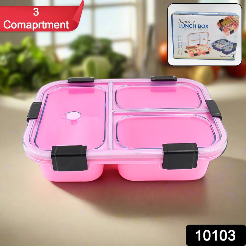 PlasticLunch Box for Kids, Lunch Box for Kids 3 Compartment Insulated Lunch Box Tiffin Box for Boys, Girls, School & Office Men (3 Compartment Lunch Box / 1 Pc)