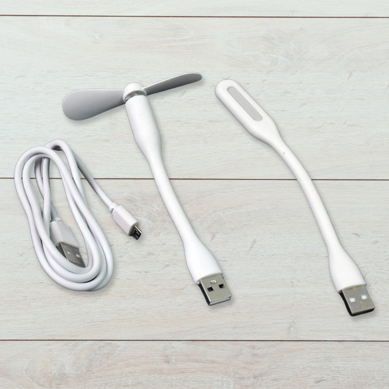 - Includes 3, Micro USB Cable, USB Fan & USB Light.