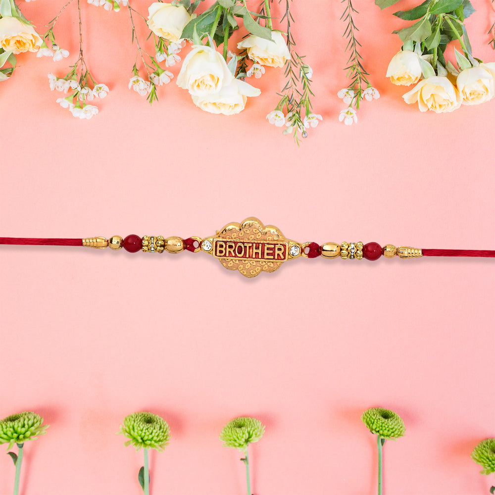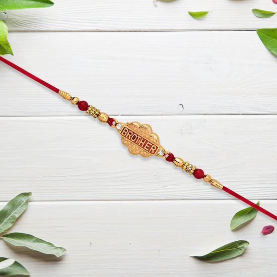 Honor the timeless bond between siblings with our intricately designed Rakhi. Crafted with care and elegance, this Rakhi blends traditional charm with modern aesthetics. Whether you're near or far, send your love and blessings with this exquisite thread of affection.