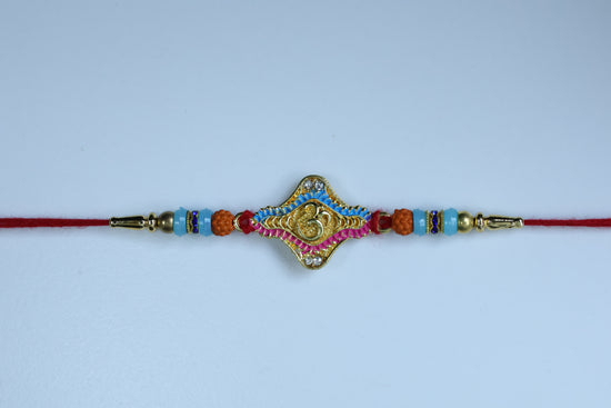 Honor the timeless bond between siblings with our intricately designed Rakhi. Crafted with care and elegance, this Rakhi blends traditional charm with modern aesthetics. Whether you're near or far, send your love and blessings with this exquisite thread of affection.
