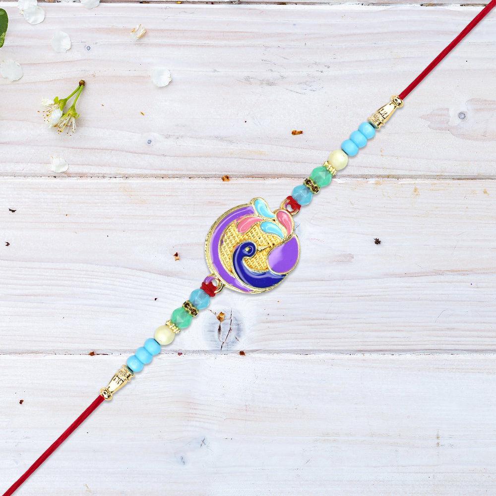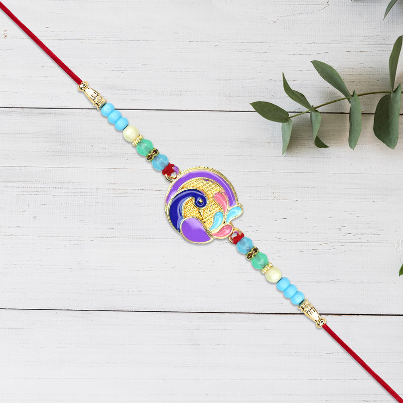 Honor the timeless bond between siblings with our intricately designed Rakhi. Crafted with care and elegance, this Rakhi blends traditional charm with modern aesthetics. Whether you're near or far, send your love and blessings with this exquisite thread of affection.