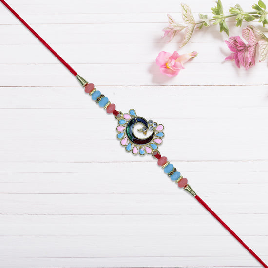 Honor the timeless bond between siblings with our intricately designed Rakhi. Crafted with care and elegance, this Rakhi blends traditional charm with modern aesthetics. Whether you're near or far, send your love and blessings with this exquisite thread of affection.