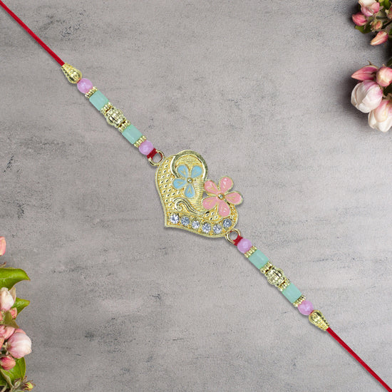 Honor the timeless bond between siblings with our intricately designed Rakhi. Crafted with care and elegance, this Rakhi blends traditional charm with modern aesthetics. Whether you're near or far, send your love and blessings with this exquisite thread of affection.