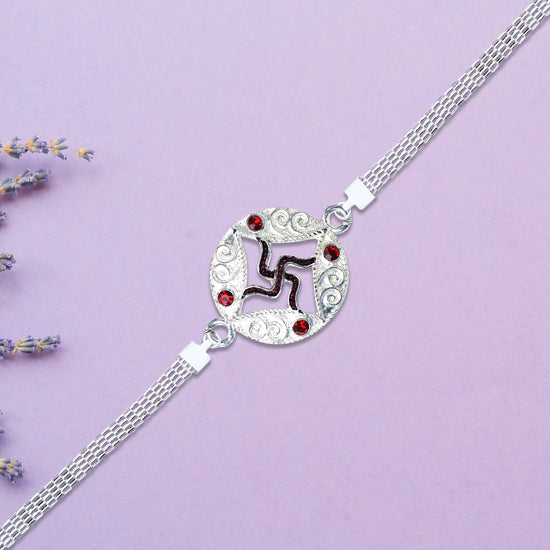 Honor the timeless bond between siblings with our intricately designed Rakhi. Crafted with care and elegance, this Rakhi blends traditional charm with modern aesthetics. Whether you're near or far, send your love and blessings with this exquisite thread of affection.