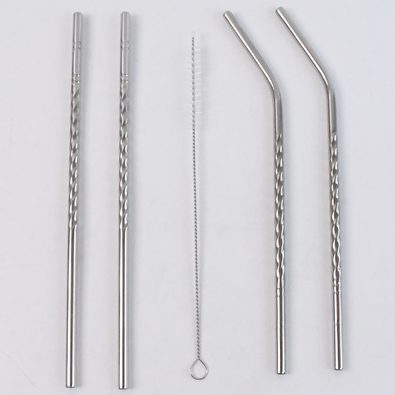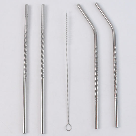 Reusable Stainless Steel Straws Set Of 5 (2 Straight Straws 2 Bent Straws 1 Brush)