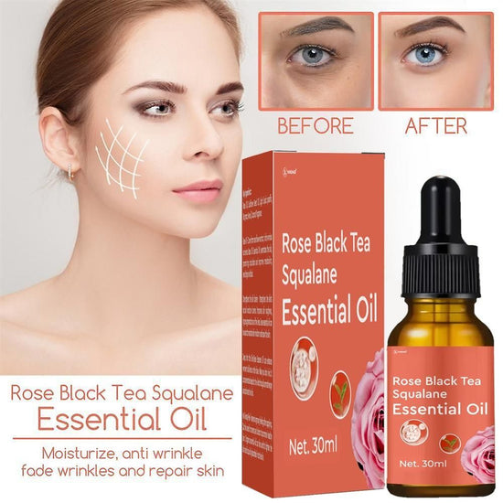 Rose Black Tea Squalane Essential Oil, Anti-aging Anti-wrinkle Serum Moisturising Serum, Pore Shrink Face Serum Hyaluronic Acid Moist, Rose Oil Essential Oil, Suitable for All Skin Types