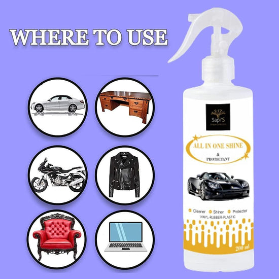 Product Name: Sapi'S All in One Shine & Protectant Liquid Body Polish to Shine and Protect Vinyl, Rubber and Plastic - 200 ml Car/Bike Care/Car Accessories/Automotive Products, Suitable for All Surfaces