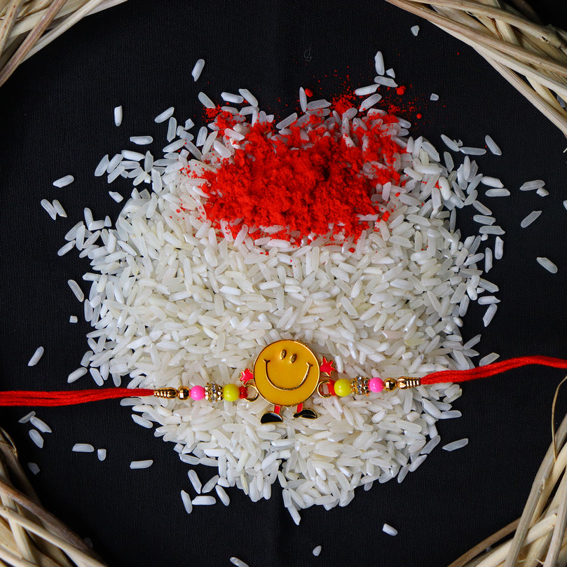 Smiley Face Kids Rakhi With Colorful Beads Fun Playful Design