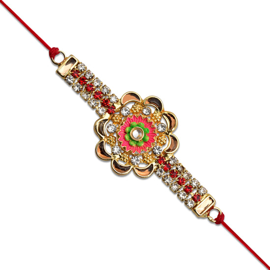 Type: Stone Studded Floral Rakhi With Colorful Enamel Center